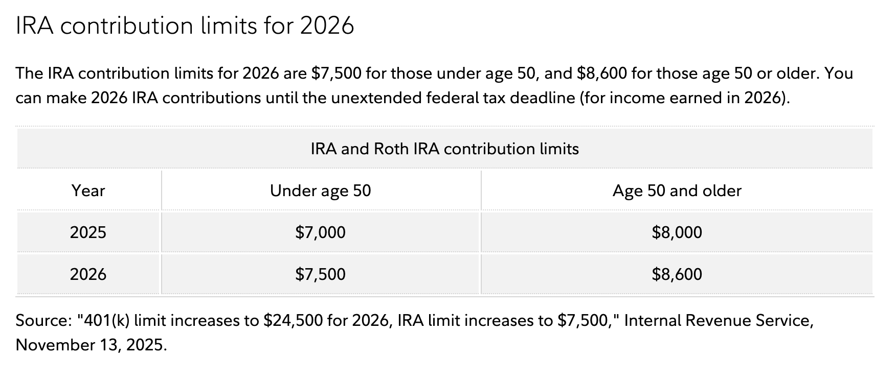 For 2026, the contribution limit is $7,500 (plus catch-up if eligible).